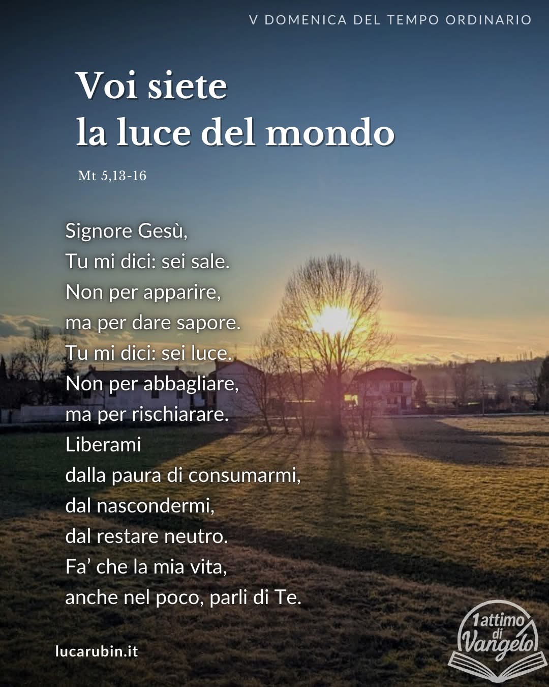 Signore Gesù, Tu mi dici: sei sale. Non per apparire, ma per dare sapore.